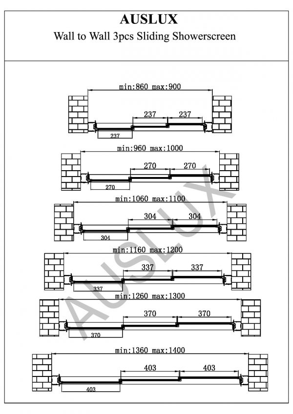 Wall to wall 3 pieces Framed Showerscreen. 2